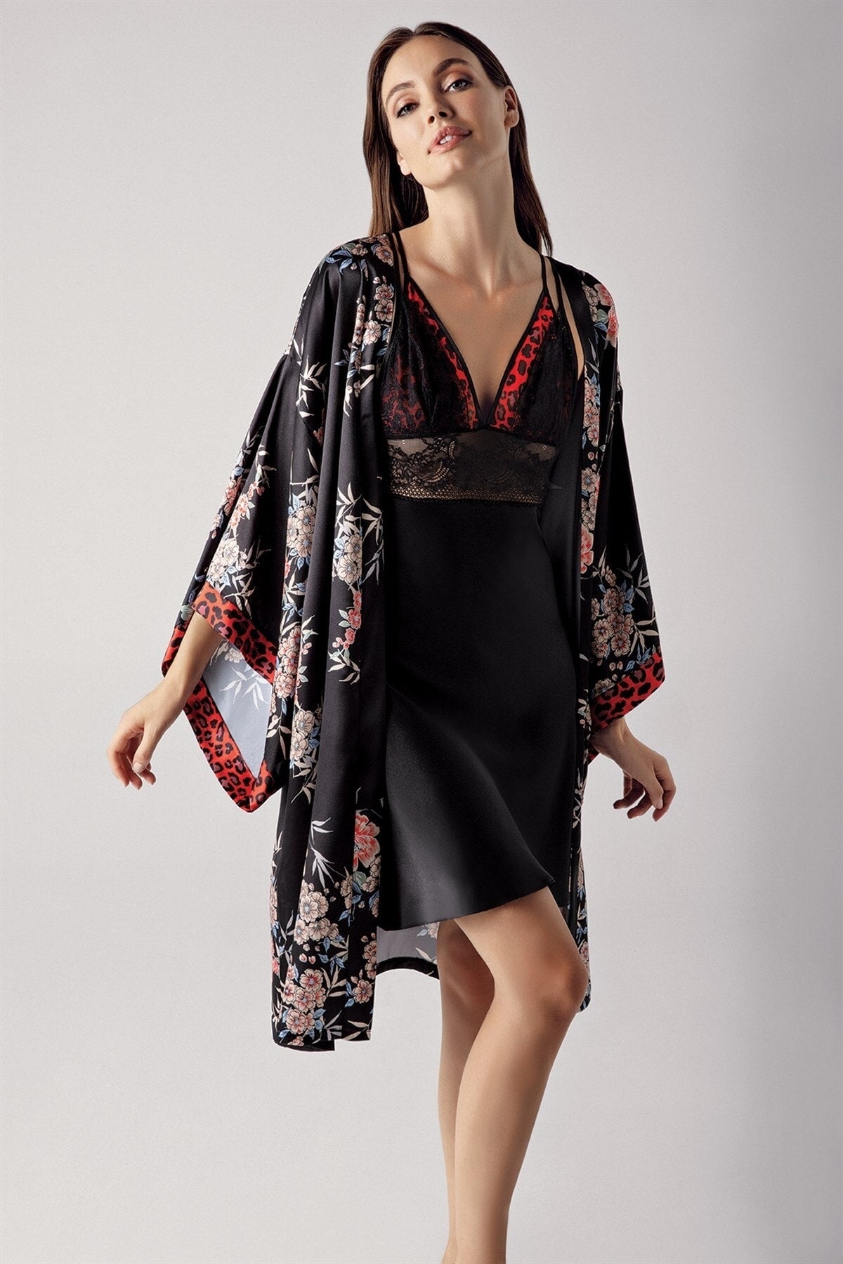 The Perin Satin Nightgown Set offers a luxurious blend of elegance and comfort. Crafted from silky satin that glides smoothly on the skin, this 4-piece set elevates your nightwear with a refined, feminine look. Ideal for relaxing evenings or special occasions.
